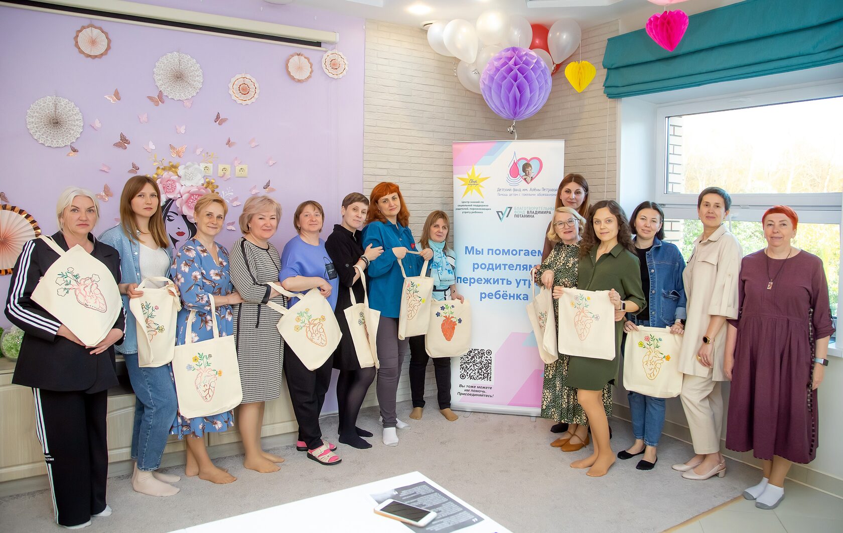 В этот вечер Елена Алексеевна в качестве соведущей пригласила специалиста Центра Знаний "Свет надежды" Ольгу Анатольевну. Вместе они провели увлекательный мастер-класс по росписи сумок-шоперов с изображением материнского сердца, из которого распускаются прекрасные цветы. Творческое занятие было наполнено теплом, любовью и светлой грустью.